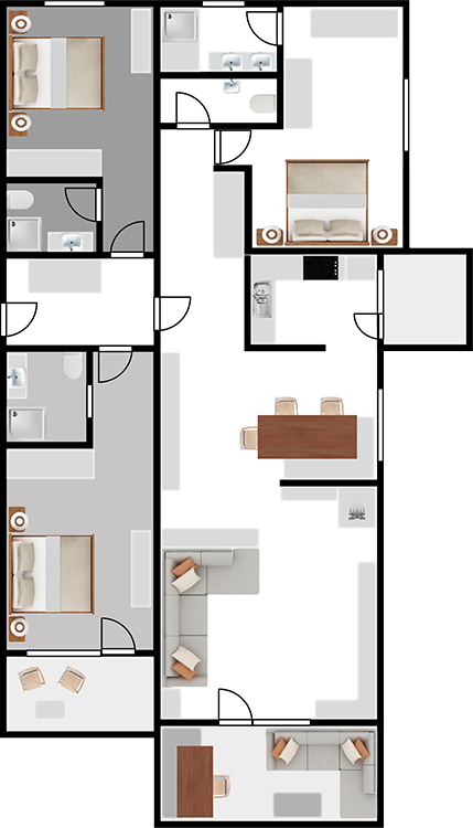 Kombinieren Sie je nach Anzahl Gäste ihr Wunschappartement. Für 2 Personen eignet sich das Hauptappartement. Bei 4 Personen empfehlen wir das Hauptappartement und das Südzimmer, damit alle von der herrlichen Aussicht profitieren können. Bei 6 Personen steht zusätzlich das Nordzimmer zur Verfügung.